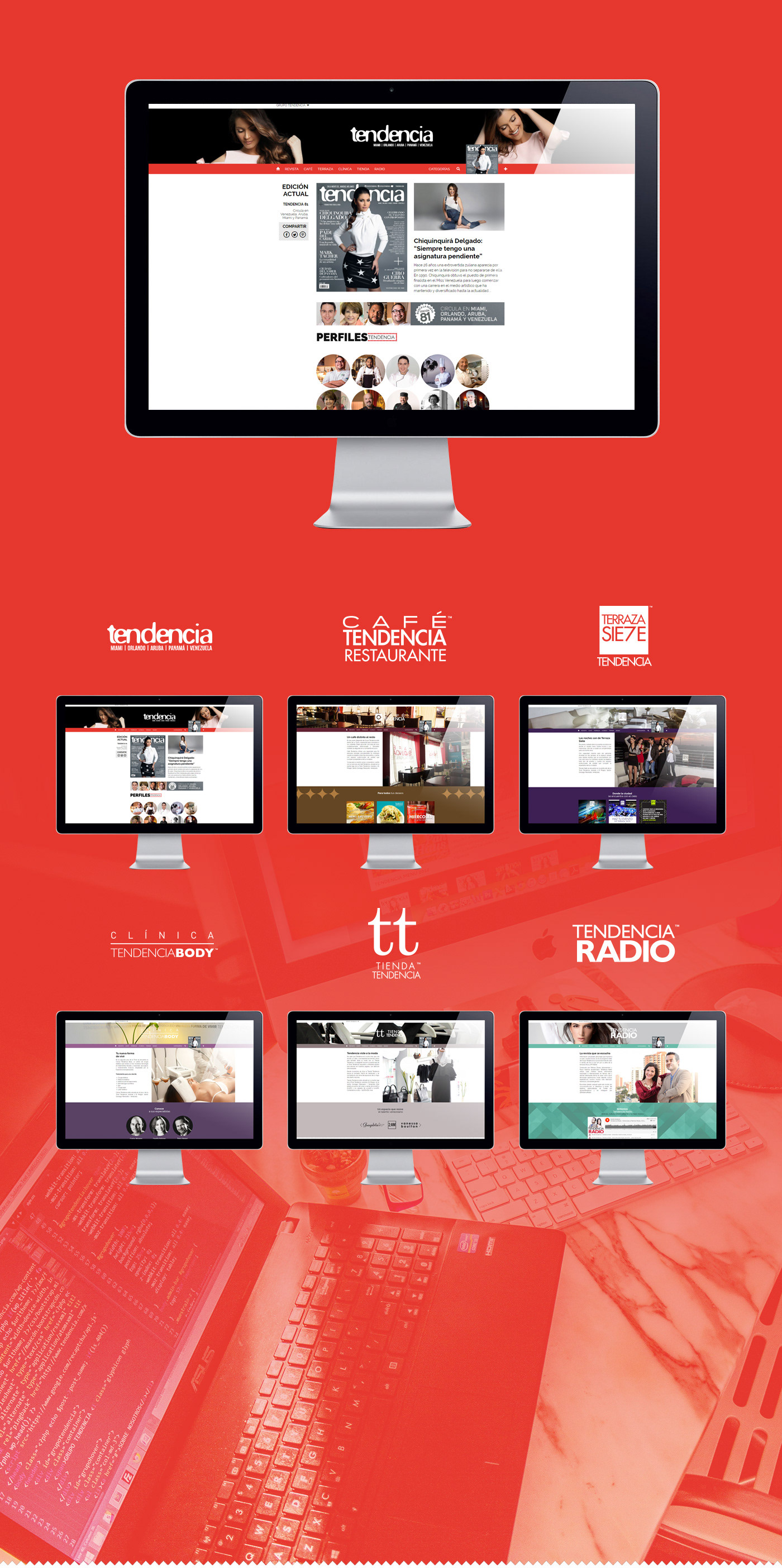 Tendencia holds the following brands: Tendencia Magazine, Cafe Tendencia Restaurante, Terraza Siete, Tendencia Body Clinic, Tendencia Store, Radio Tendencia, and Tendencia Studio; achieving with www.tendencia.com a global range for its projects, reaching cities like Miami, Orlando in the United States, Panama City in Panama, Aruba island and main cities (such as Maracaibo and Caracas) in Venezuela.